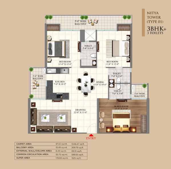 1925 Sq.ft. | 3 BHK | 3 Bath(s)