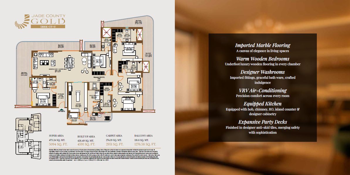 | Type 5 BHK Flats / Apartments | Super Area 5094 Sq.ft. | Builtup Area 4591 Sq.ft. | Carpet Area 2951 Sq.ft. | Price 6.37 Cr. | Floor Plan