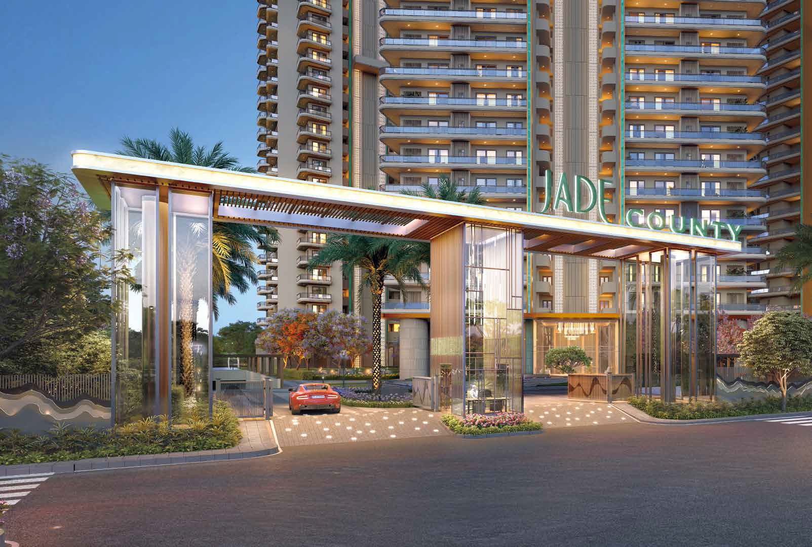 Discover Jade County, a high-rise residential masterpiece located at a bustling thoroughfare across the Delhi Meerut Expressway, it boasts excellent connectivity to Delhi and NCR. This IGBC GOLD rated project champions sustainable urban living through its green design, prioritizing energy efficiency and well-being. Inspired by the enduring allure of the Jade Stone, Jade County seamlessly blends indoor and outdoor spaces. A vast central landscape with a serene waterbody and clubhouse fosters tranquil views, while double-height stilts and grand entrance lobbies create an expansive, connected environment, redefining urban living, making uncompromised luxury accessible.