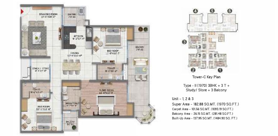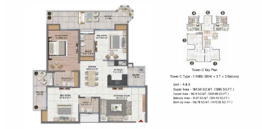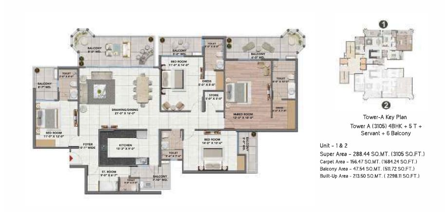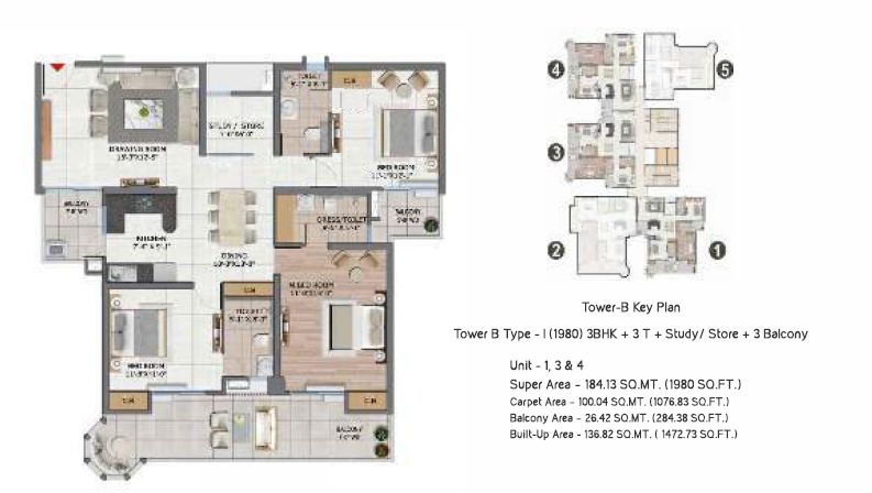 1980 Sq.ft. | 3 BHK | 3 Bath(s)